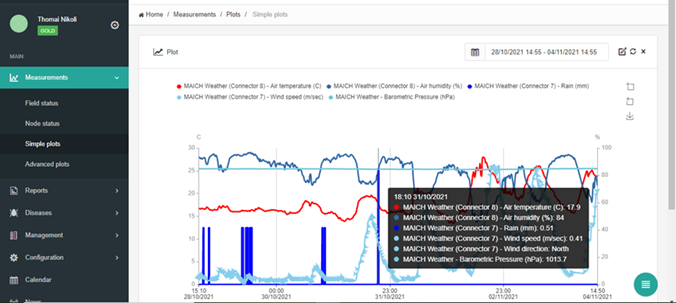 All measured data (outdoors, indoors, growing media) are transmitted and archived in a communication platform offered both by Maggioli and Synelixis, which allows real time monitoring of the greenhouse production.